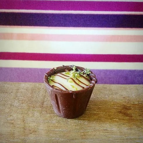 Copinho de chocolate meio amargo nobre recheado com mousse de limão.